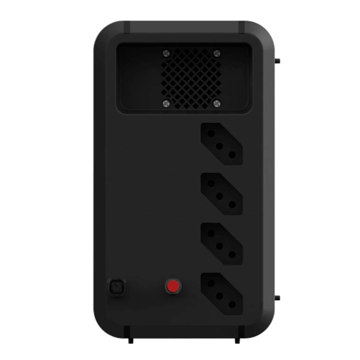 NOBREAK 600VA BIV ATTIV INTELBRAS. Modelo: ATTIV Marca: Intelbras Cor: Preto Potência: 600VA Alimentação: Bivolt Informações Adicionais: Ideal para eletrônicos simples Design ergonômico e versátil Use na horizontal ou vertical Bivolt: entrada 120V / 220V, saída 120V Religamento automático 4 tomadas de saída Especificações Técnicas: Potência nominal de pico: 600 VA / 300 W Topologia: Interativo Forma de onda em modo Bateria : Semissenoidal (retangular) Frequência de saída em modo Bateria : 60 Hz ±1 Hz Frequência de entrada: 60 Hz ±3 Hz Tensão nominal de entrada: bivolt automático 120V~ ±20% (96-144 V~) / 220 V~ ±20% (176-264 V~) Tensão nominal de saída: 120 V~ Regulação da tensão de saída: Modo Rede: 120V~ ±10%; Modo Bateria: 120V~ ±5% Tomadas de saída: 4 tomadas de 10 A (NBR 14136) Bateria interna: 1 selada (VRLA) 12 V 7 Ah Religamento automático: O nobreak reinicia automaticamente quando a rede elétrica volta à normalidade, mesmo quando a bateria está descarregada Função DC start: Permite ligar o nobreak mesmo na ausência de energia elétrica Sinalizações audiovisuais: status da bateria e indicação de sobrecarga via LEDs e alertas sonoros Conteúdo da Embalagem: 1 nobreak 1 manual do usuário.