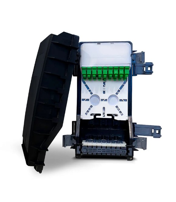 CTO PRIME 16FO S/SPLITTER A CTO Prime foi projetada e desenvolvida pensando ao máximo na facilidade de instalação em campo, funcionalidade e configurações da caixa, que irá facilitar e agilizar o trabalho do profissional de telecomunicações. Produto homologado ANATEL. Fabricada em termoplásticos, com design arrojado e resistente a intempéries e impactos, além de proteção contra UV, possui duas bandejas de acomodação permitindo a isolação da rede de infraestrutura à rede de atendimento, além do amplo espaço para acomodação de fibras e splitters para o atendimento de até 16 assinantes e ainda permite a utilização de 2 interfaces através de adaptadores do tipo SC para entrada conectorizada ou derivação da rede (disponível em APC e UPC). Possui acomodação de Splitters de 1x8 e 1x16 em ambas bandejas (atendimento e fusão). A caixa ainda possui entrada, saída e derivação de cabos AS de até 13mm, permitindo a instalação e remoção de forma fácil, rápida e prática. Traz facilidades e flexibilidade para construção e manutenção em layouts de redes pré-conectorizadas (PRECON) com caixas de derivação sem a necessidade de máquina de fusão.