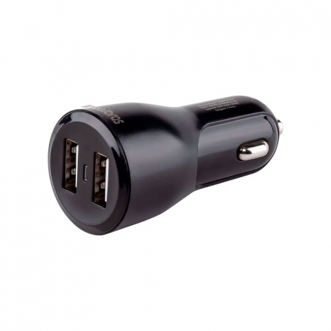 Carregador Universal Veicular Ecv2 Fast Intelbras. Carregador veicular USB com 2 portas O carregador veicular universal ECV 2 Fast pode ser conectado à tomada 12V do automóvel para fornecer alimentação para dispositivos com interface USB como smartphones, tablets, sistemas de navegação GPS, câmeras automotivas de painel, entre outros. O carregador possui duas saídas USB – podendo alimentar até dois aparelhos simultaneamente – com potência máxima de 12 W*, oferecendo carregamento até duas vezes mais rápido. O design compacto e discreto foi pensado para reduzir distrações e ter melhor integração ao painel do carro. » Alimenta até dois dispositivos simultaneamente » Carrega até 2 vezes mais rápido* » Design compacto e discreto » Proteção contra sobrecarga e curto-circuito » LED indicativo de funcionamento. Especificações técnicas: Entrada Acendedor de cigarro automotivo, 12 ~ 24 Vcc Saída 2× USB Type-A, 5 V ? 2,4 A (12 W), máximo total 2,4 A Proteção Curto-circuito Sobrecarga Sobreaquecimento Temperatura de operação 0 °C ~ 35 °C Temperatura de armazenamento -40 °C ~ 70 °C.