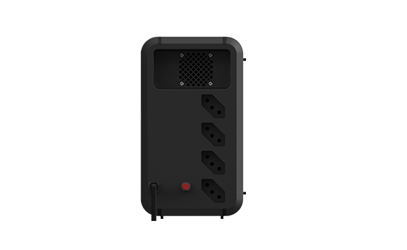 Descrições » Ideal para eletrônicos simples » 600 VA / 300 W » Monovolt: 220 V » 4 tomadas de saída » 1 bateria de 12 V 7 Ah » 9 níveis de proteção » Religamento automático Especificações técnicas Modelo Potência nominal de pico: 600 VA / 300 W Topologia: Interativo Entrada Tensão nominal de entrada: 220 V~ Variação da tensão: 176-264 V~ (±20%) Frequência: 60 Hz ±3 Hz Disjuntor: 5 A Consumo em modo Stand by: 6 W Cabo de força: Cabo de 1 m com plugue tripolar de acordo com a norma NBR 14136 Saída Fator de potência: 0,5 Tensão nominal de saída: 220 V~ Tempo de transferência: <8 ms Circuito desmagnetizador: Garante o valor de tensão de saída para cargas eletrônicas Frequência no modo Bateria: 60 Hz ±1 Hz Forma de onda no modo Bateria: Semissenoidal (retangular) Tomada (NBR 14136): 4 tomadas de 10 A Regulação da tensão: Modo Rede: 220V~ ±10% Modo Bateria: 220V~ ±5% Proteções Proteção contra sub/sobretensão: Passa a operar no modo Bateria Proteção contra descarga da bateria: Até 10,2 V Proteção contra sobrecarga na saída: Modo Rede: fusível rearmável Modo Bateria: limitador de corrente interno Baterias Bateria interna: Selada chumbo-ácido (VRLA) Quantidade e capacidade: 1 × 12 V 7 Ah Conector para bateria(s) externa(s): ~ Expansão para bateria(s) externa(s): ~ Cabo conexão bateria(s) externa(s): ~ Barramento: 12 V Corrente máxima de carga: 1 A Tempo máximo de carga sem bateria externa: Até 10 h Características físicas do produto Dimensões (L × A × P): 124 × 214 × 269 mm Peso líquido: 4,846 kg Temperatura de operação: 0-40 °C Umidade ambiente: 0-90% (sem condensação)